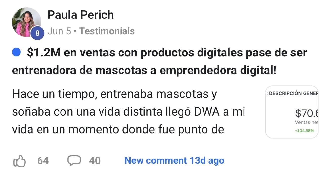 Es una formación digital paso a paso, productos listos para vender, sistemas de ventas automatizados y acceso a una comunidad exclusiva (la más grande del mundo) para que nunca construyas tu negocio solo.