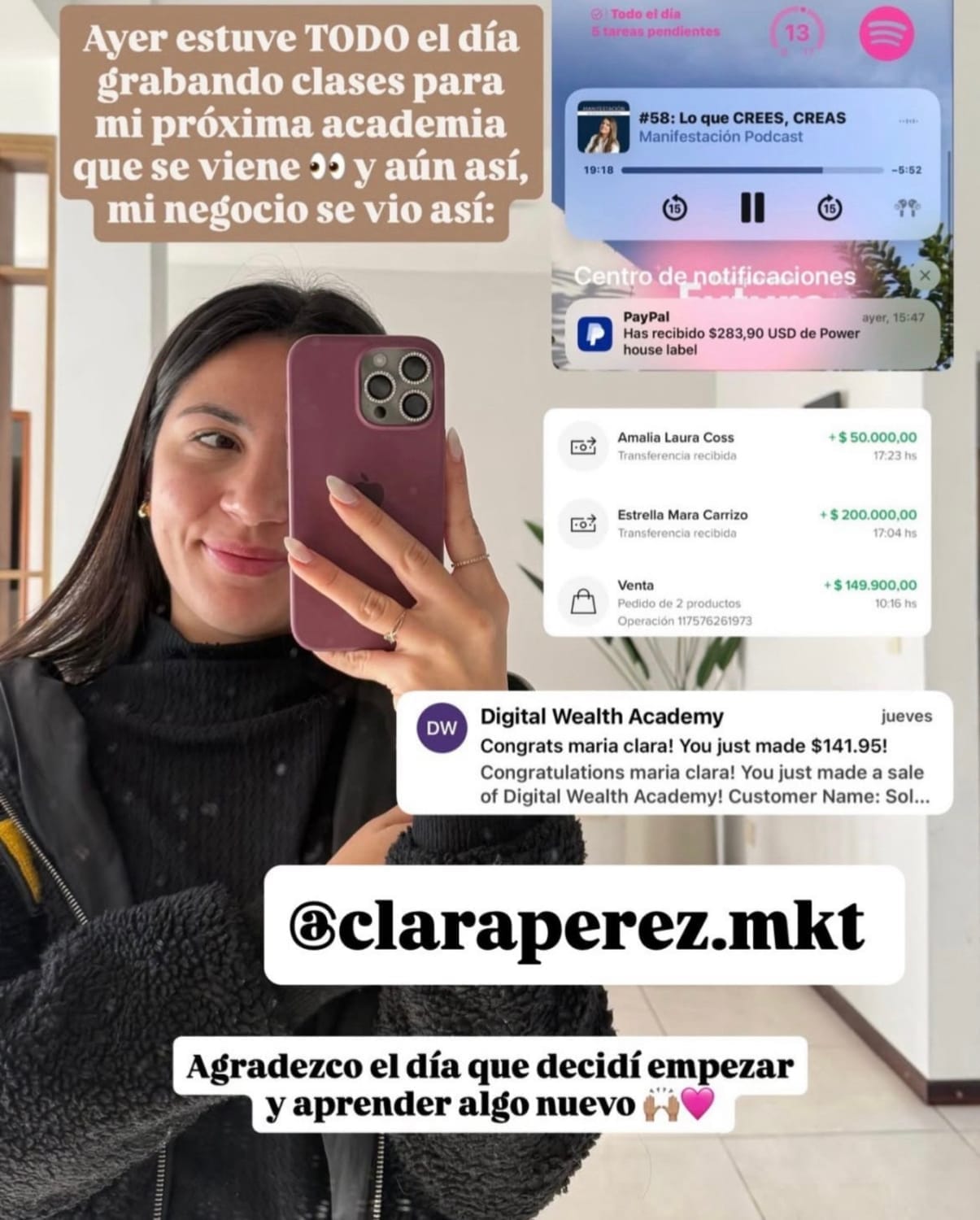 Yo comencé sin saber absolutamente nada de marketing digital, de redes sociales, de generación de contenido ni nada relacionado; fue en este curso donde adquirí todas las habilidades para realizar mis ventas.